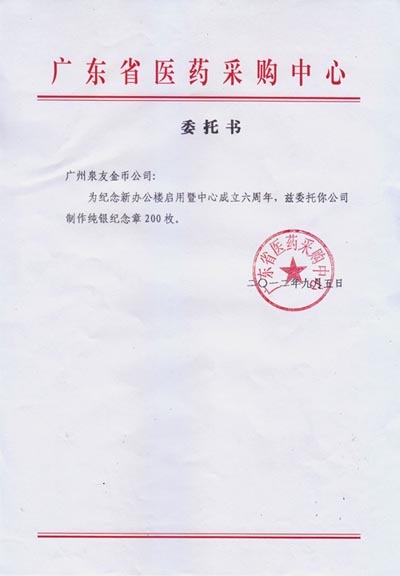 2012年9月廣東省醫藥采購中心成立六周年紀念幣定制