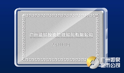 • 2013-11月:廣州藍(lán)獅投資公司Ag.999純銀500克銀磚、純銀銀卡、純銀銀條加工定制。