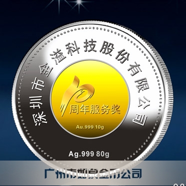 深圳金溢科技公司周年慶典制作純銀包金紀(jì)念幣