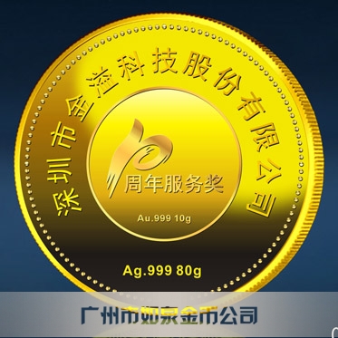 深圳市金溢科技公司上市紀念幣周年慶表彰獎勵服務滿五年優秀員工、十年以上老員工定制純金銀紀念幣