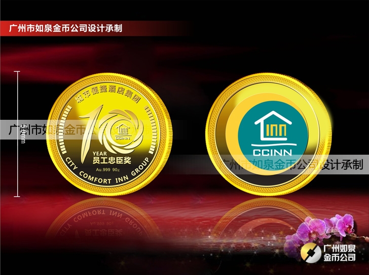 廣西桂林城市便捷酒店集團工作在崗服務十年員工金牌定制