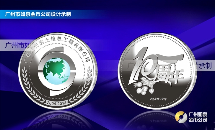 2014年5月定制 廣東友元國土信息工程公司十周年慶紀念銀幣