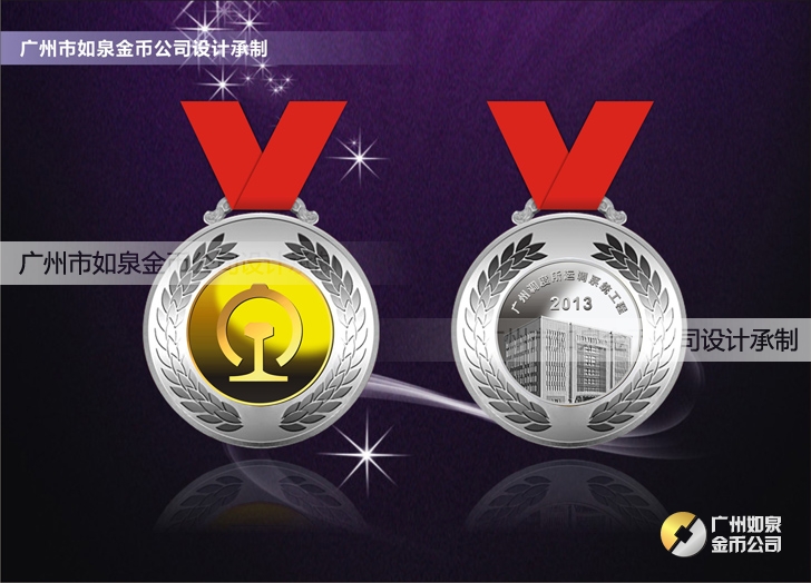 2013年4月:定制廣鐵集團(tuán)銀鑲金紀(jì)念章定制純銀勛章