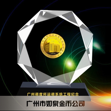 定制廣鐵集團定做水晶鑲純金紀念幣