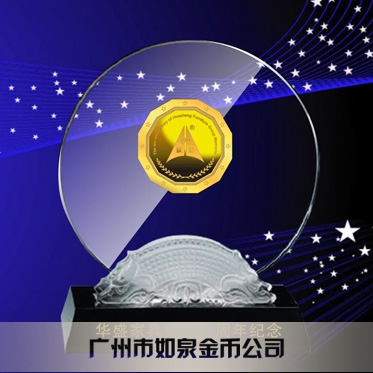 定制中山華盛公司定制十周年紀念幣鑲嵌水晶擺件