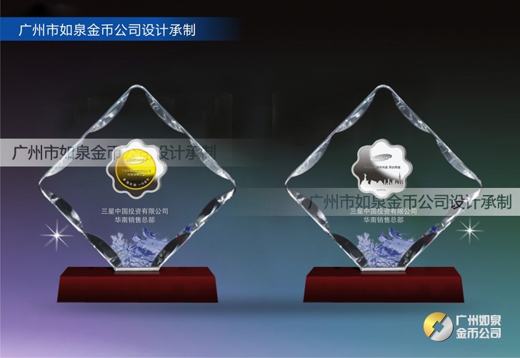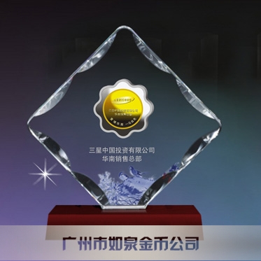 定制三星公司水晶擺件鑲純銀包純金紀(jì)念幣定制