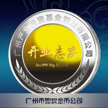 廣州產(chǎn)業(yè)基金定制純銀鑲金紀念幣制作銀鑲金紀念幣