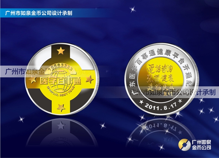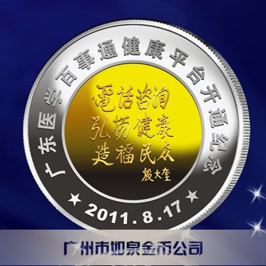 廣州金幣公司定制金包銀紀念幣醫學百事通紀念金幣