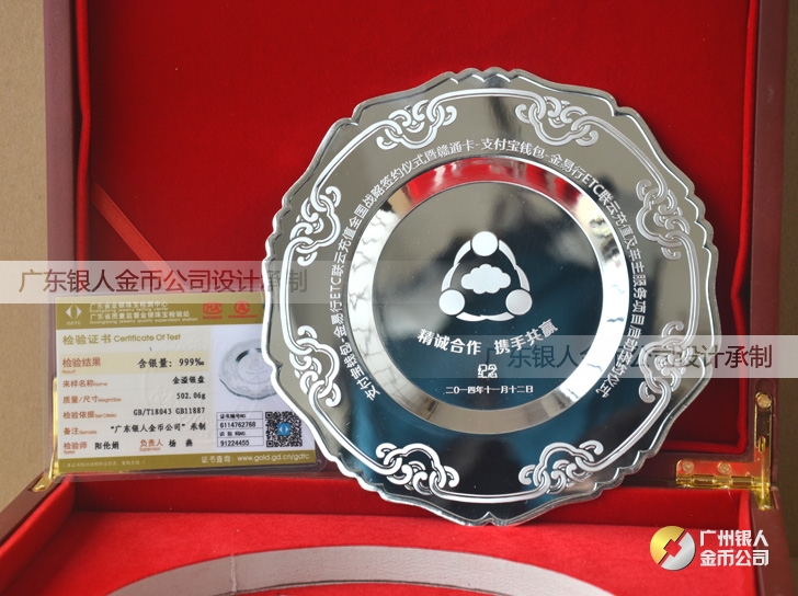 定做熱烈慶祝深圳金溢科技與支付寶達成ETC戰略合作伙伴純銀紀念盤制作