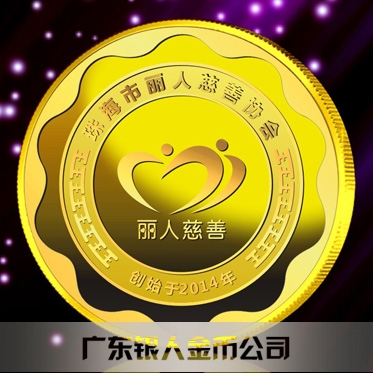 珠海麗人慈善會純金千足金黃金金牌定制、純金銀牌定制