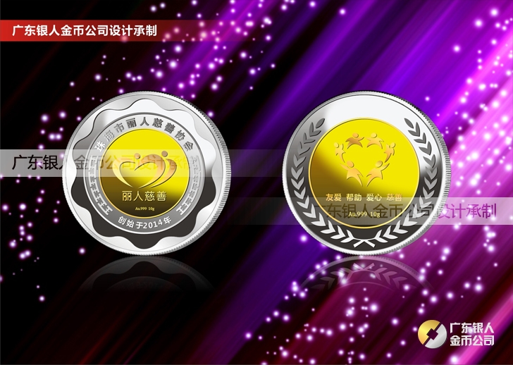 珠海麗人慈善會(huì)成立周年慶典定制鑲金銀紀(jì)念幣定制、純銀鑲金銀紀(jì)念幣定制