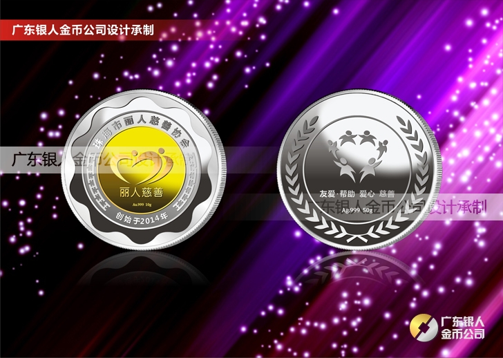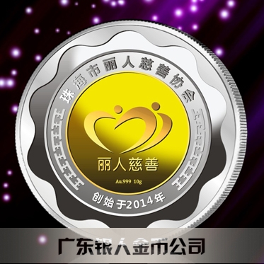 珠海麗人慈善會定制純銀鑲嵌純金幣定制、銀包金紀念幣定制