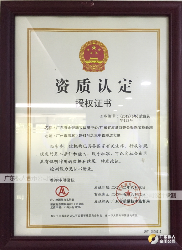 廣東銀人金幣公司承接客戶個性化定制的金銀幣、金銀章、金銀條、金銀牌、金銀盤均由國家質監部門、嚴格檢測、權威鑒定: