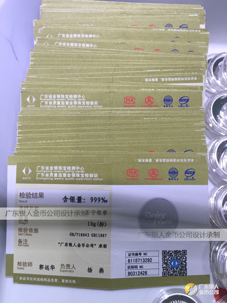 廣東銀人金幣公司承接客戶個性化定制的金銀幣、金銀章、金銀條、金銀牌、金銀盤均由國家質監部門、嚴格檢測、權威鑒定: