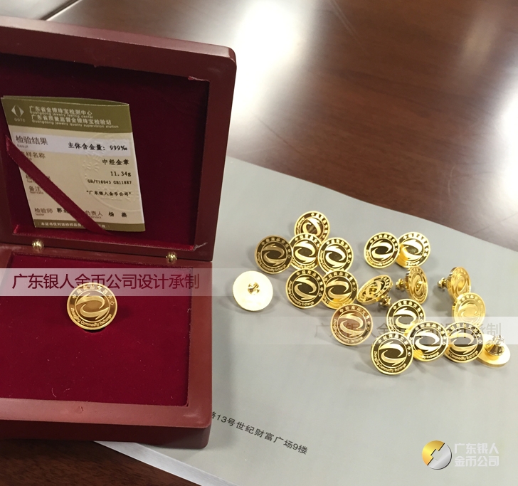 2015年3月定制 萬達純金徽章定做、純金徽章訂制