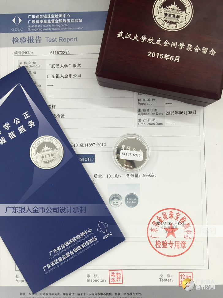 廣東銀人金幣公司承接客戶個性化定制的金銀幣、金銀章、金銀條、金銀牌、金銀盤均由國家質監部門、嚴格檢測、權威鑒定: