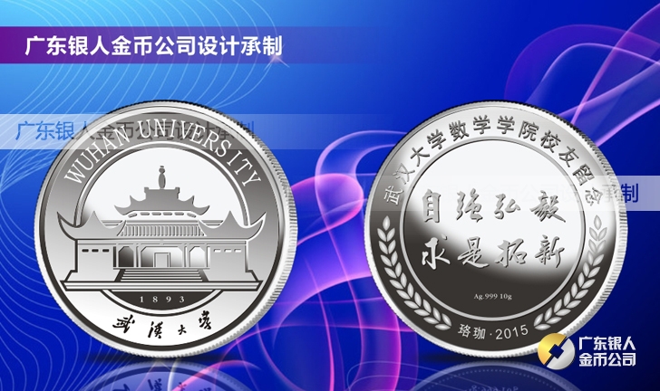 武漢大學同學會組織校友聚會純銀紀念章定制、同班同屆學友同學畢業十周年、畢業二十周年、畢業三十周年留念紀念活動紀念銀章定做