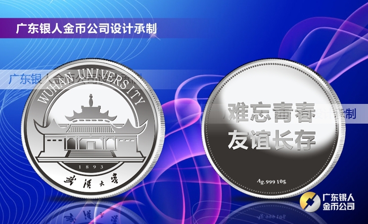 武漢大學(xué)同學(xué)畢業(yè)三十周年聚會(huì)留念慶祝活動(dòng)紀(jì)念銀幣定做、純銀紀(jì)念幣定制