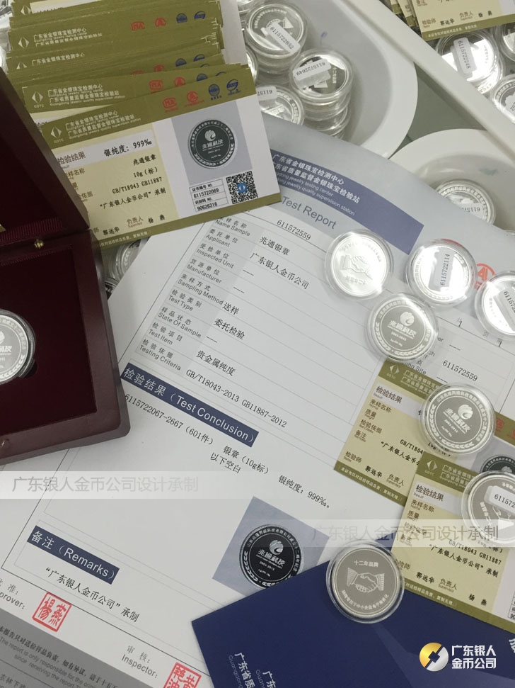 廣東銀人金幣公司承接客戶個性化定制的金銀幣、金銀章、金銀條、金銀牌、金銀盤均由國家質監部門、嚴格檢測、權威鑒定: