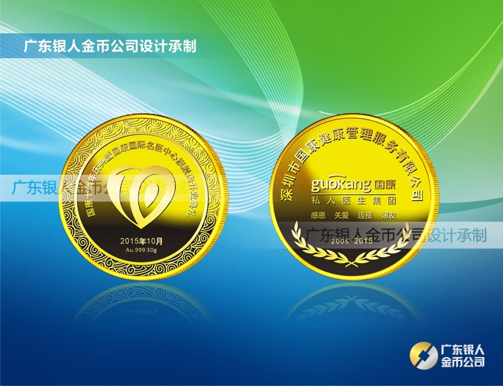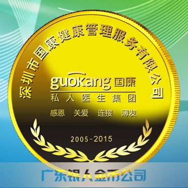 2015年9月定制 深圳國康私人醫生醫院十周年純金金幣定制