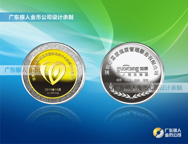 2015年9月定制 深圳國康銀鑲金紀念幣定制、純銀包純金幣定制
