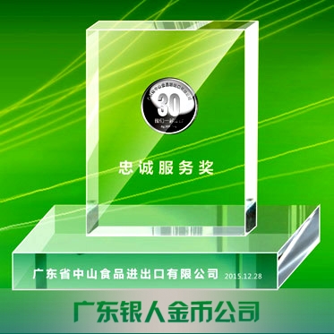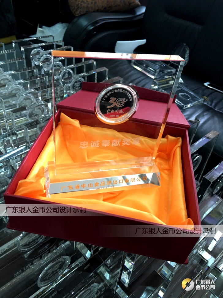 2015年11月定制 中山食品進出口公司水晶擺件鑲純銀銀幣定制