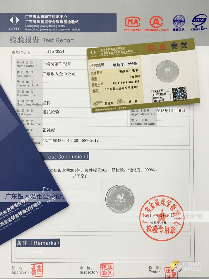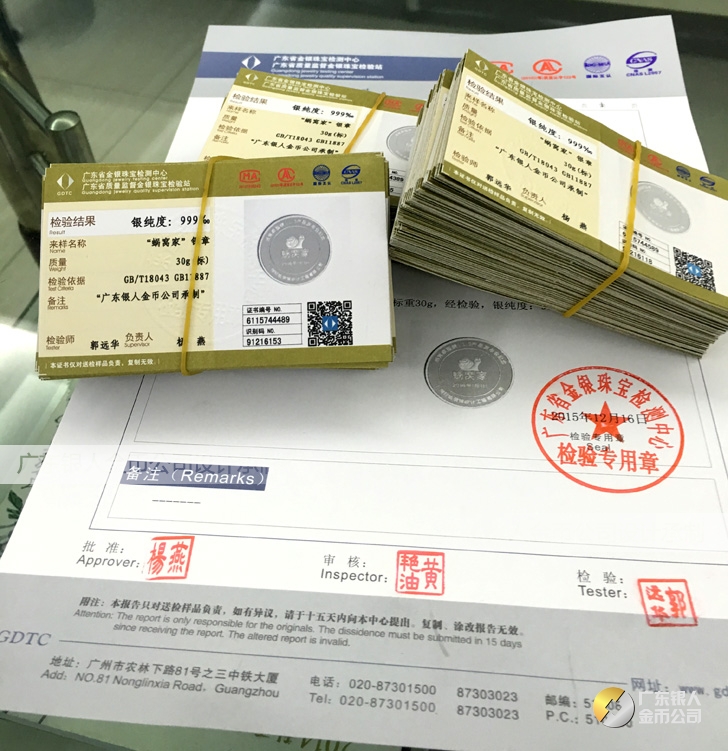 廣東銀人金幣公司承接客戶個性化定制的金銀幣、金銀章、金銀條、金銀牌、金銀盤均由國家質監部門、嚴格檢測、權威鑒定: