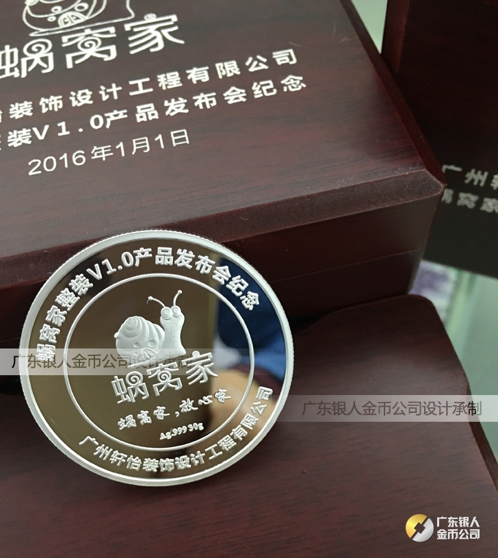 2015年12月定做 廣州軒怡公司年會純金包純銀紀念幣定做