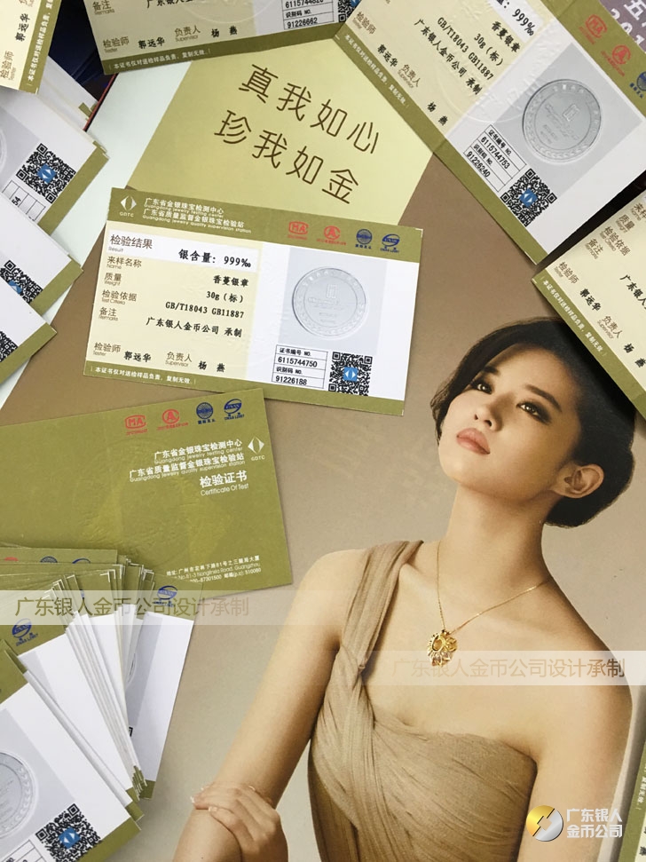 廣東銀人金幣公司承接客戶個性化定制的金銀幣、金銀章、金銀條、金銀牌、金銀盤均由國家質監(jiān)部門、嚴格檢測、權威鑒定: