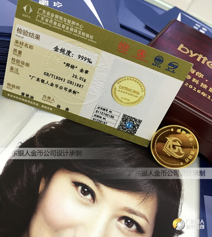 廣東銀人金幣公司承接客戶個(gè)性化定制的金銀幣、金銀章、金銀條、金銀牌、金銀盤均由國(guó)家質(zhì)監(jiān)部門、嚴(yán)格檢測(cè)、權(quán)威鑒定: