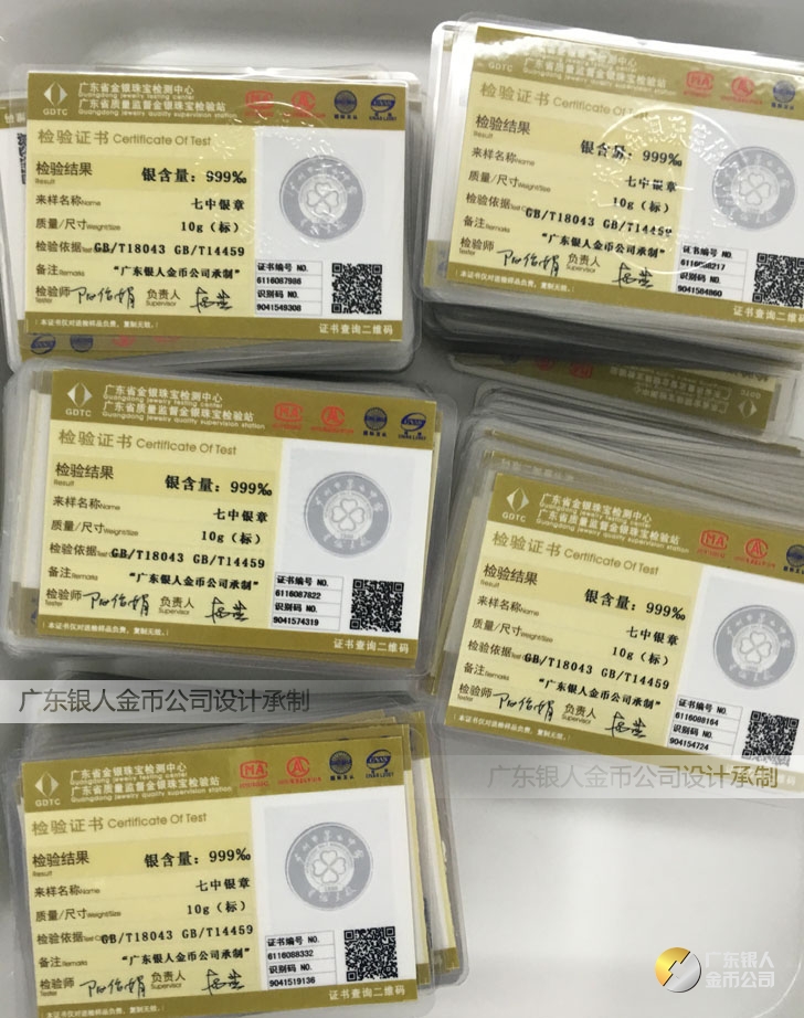 廣東銀人金幣公司承接客戶個性化定制的金銀幣、金銀章、金銀條、金銀牌、金銀盤均由國家質(zhì)監(jiān)部門、嚴(yán)格檢測、權(quán)威鑒定:
