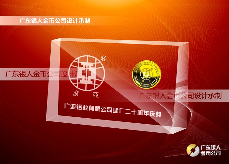 2016年4月定制 廣亞鋁材集團20周年慶純金幣鑲水晶擺件定制