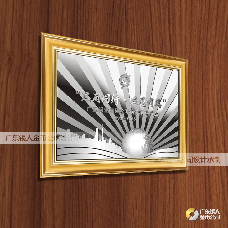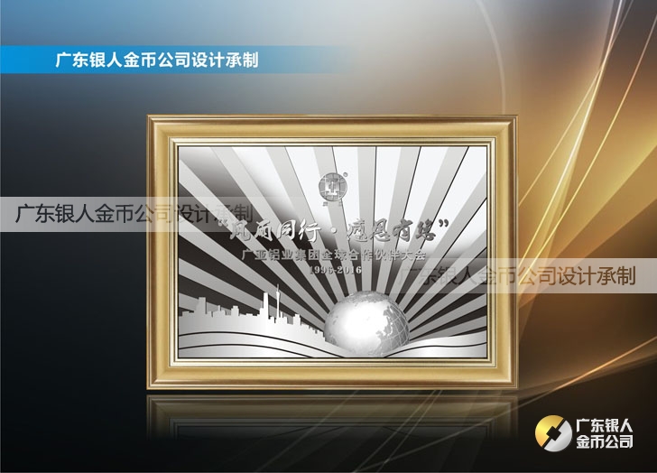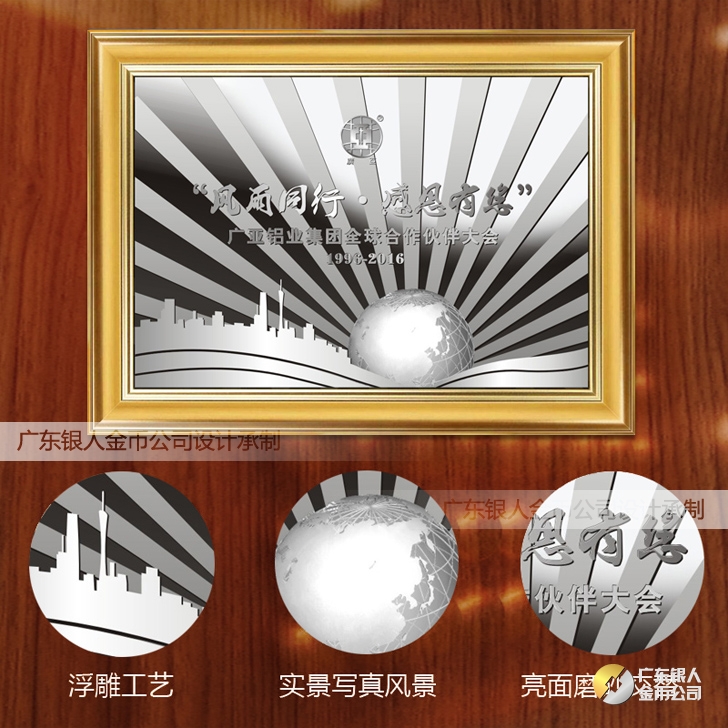 2016年4月定制 廣亞鋁業全球合作伙伴純銀銀畫浮雕銀箔畫
