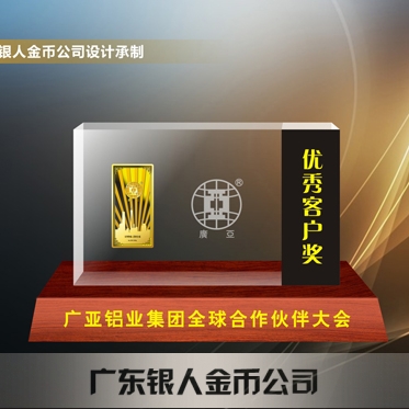 2016年4月定制 廣亞鋁材建廠二十周年純金金條加工鑲擺件定制