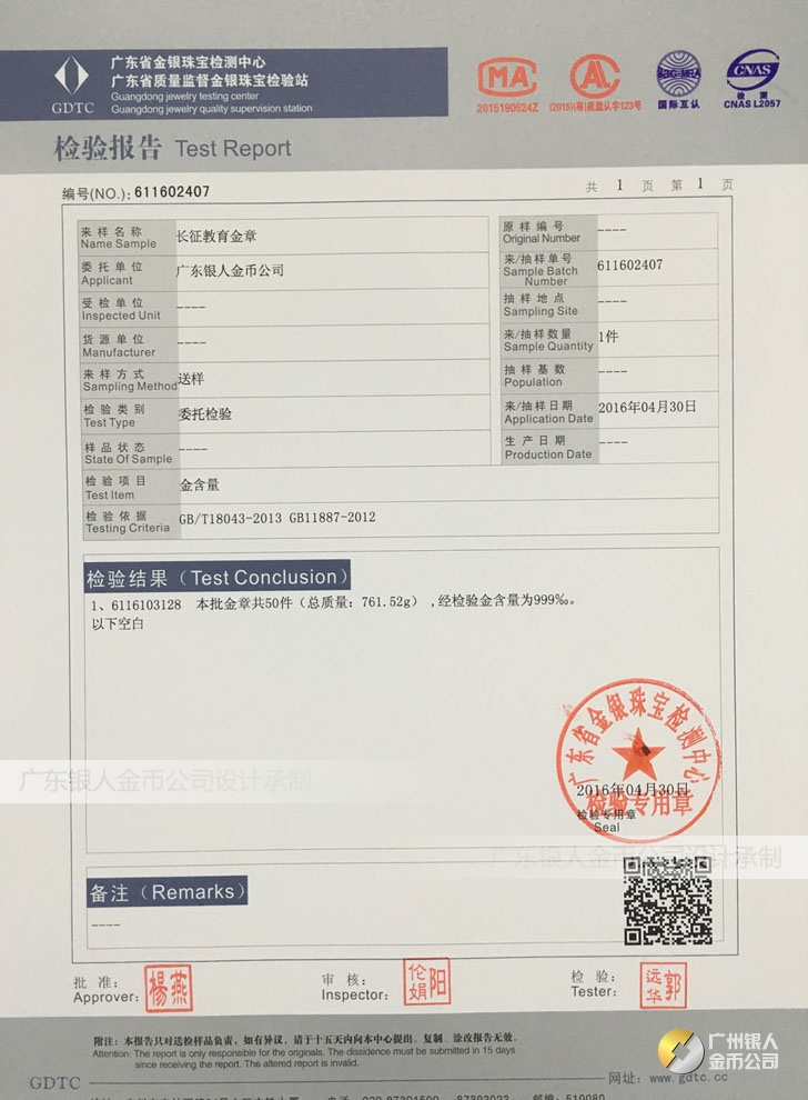 廣東銀人金幣公司承接客戶個(gè)性化定制的金銀幣、金銀章、金銀條、金銀牌、金銀盤均由國(guó)家質(zhì)監(jiān)部門、嚴(yán)格檢測(cè)、權(quán)威鑒定: