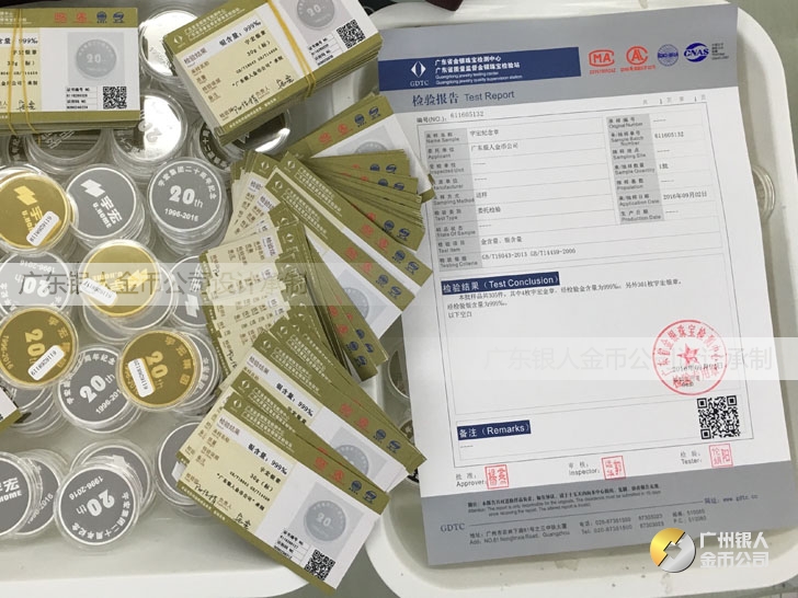 廣東銀人金幣公司承接客戶個性化定制的金銀幣、金銀章、金銀條、金銀牌、金銀盤均由國家質(zhì)監(jiān)部門、嚴(yán)格檢測、權(quán)威鑒定: