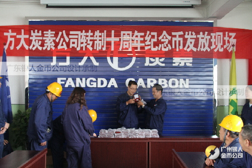 9月27日,紀念幣如約運送到了公司,采購部立即組織黨群工作部、人力資源部相關人員隨機將銀幣樣品送到公司檢測中心進行測試。經檢測,此紀念幣符合國家有色金屬及電子材料測試中心分析檢測報告。人力資源部立即組織人員清點數量并進行發放。發放工作分三個地點同時進行,各單位領導親臨現場向每位員工進行發放,員工們個個臉上洋溢著幸福的微笑,流露出了方大人的自豪感。