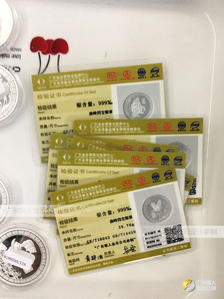 廣東銀人金幣公司承接客戶個性化定制的金銀幣、金銀章、金銀條、金銀牌、金銀盤均由國家質監部門、嚴格檢測、權威鑒定: