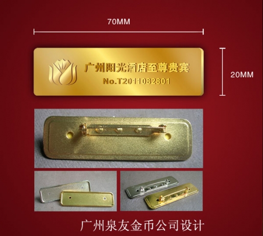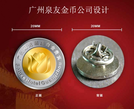 2011年6月 廣州陽光酒店純金徽章定制,純銀徽章定做