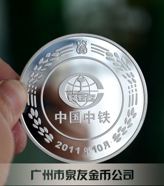 2011年9月中國中鐵純銀鑲純金紀念章定做,銀鑲金紀念幣定做