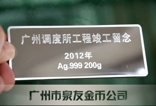 2012年4月廣鐵集團廣州調(diào)度所工程竣工紀(jì)念銀條定制