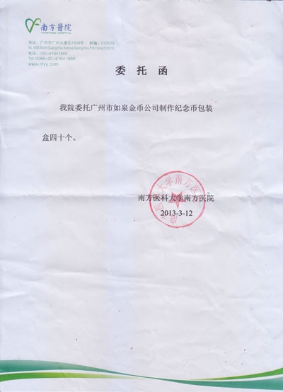 2013年3月南方醫院神經外科論壇活動黃金紀念幣盒子制作