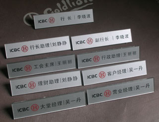 中國(guó)工商銀行黑龍江省分行——黑龍江省分行、各地市支行工作人員胸牌、營(yíng)業(yè)部員工工牌、營(yíng)業(yè)員工號(hào)牌及銀行服務(wù)窗口桌牌、柜臺(tái)水晶臺(tái)牌的設(shè)計(jì)與制作。