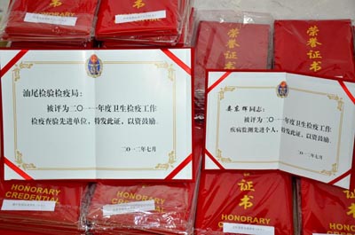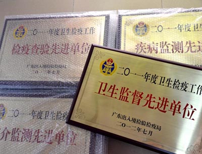 廣東省出入境檢驗檢疫局——設計制作2011年檢驗查疫先進單位獎牌、先進工作者獎品、先進個人紀念品禮品、共產黨員先鋒崗桌牌制作。