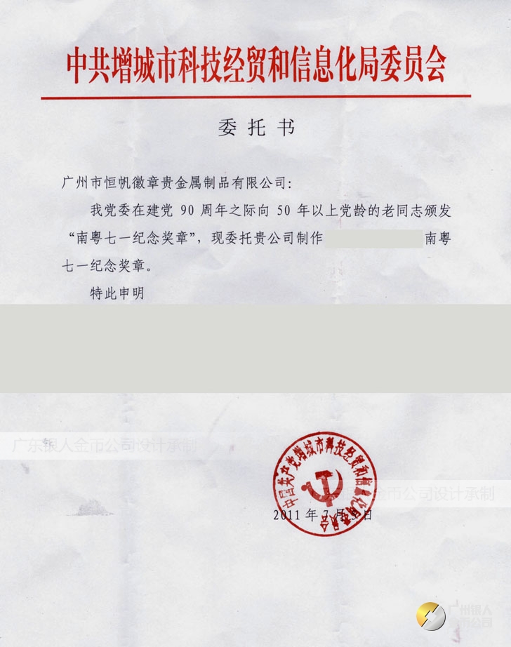 中國共產(chǎn)黨建黨90周年紀念獎?wù)?50年以上黨齡的老黨員南粵七一紀念獎?wù)?