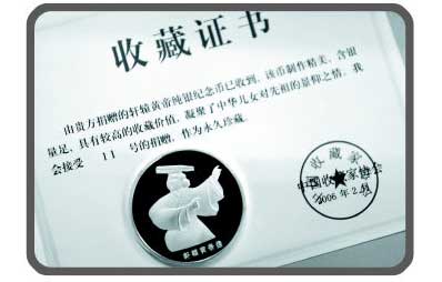 紀念幣附帶的收藏證書