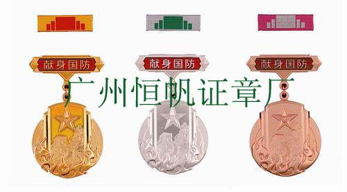 答:獻身國防紀念章的頒發對象,《紀律條令》規定得非常明確,其中金質紀念章頒發給軍隊烈士,銀質紀念章頒發給因公犧牲軍人,銅質紀念章頒發給因公致殘軍人。