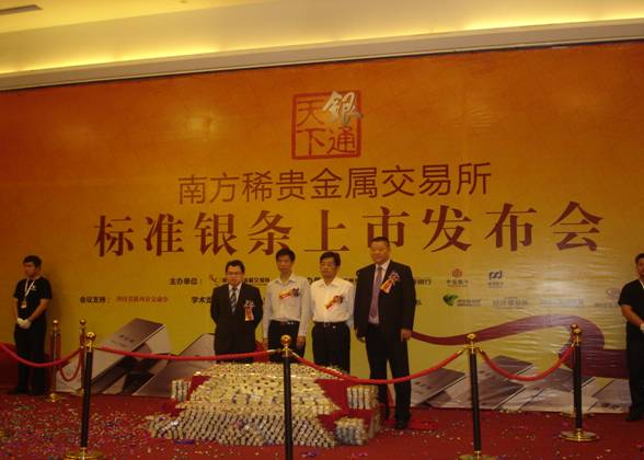 由南方稀貴金屬交易所首推的具有防偽標識的投資銀條在深圳上市,填補了稀貴金屬品牌投資的空白,將開啟銀品投資熱潮。眾多行業專家和企業高層出席了活動,共同見證了“銀通天下”這一品牌的閃亮誕生。