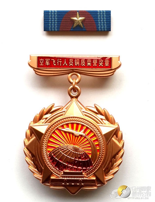 空軍功勛飛行人員金質榮譽獎章、空軍飛行人員金質榮譽獎章、空軍航空機務人員金質榮譽獎章由空軍審批;空軍飛行人員銀(銅)質榮譽獎章、空軍航空機務人員銀(銅)質榮譽獎章由軍區空軍審批(空軍直屬單位的飛行人員、航空機務人員以及其他單位的正師職飛行人員、航空機務人員由空軍審批)。圖為飛行銅質獎章實物。