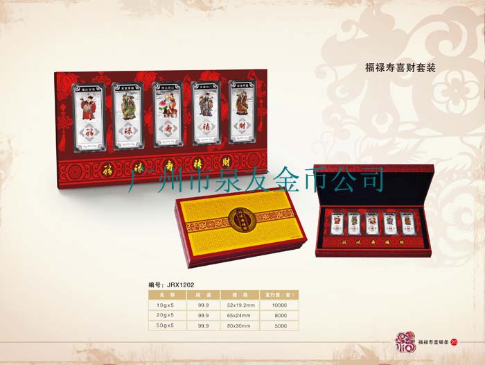 福祿壽喜財銀條、福祿壽喜財彩色銀條、五福彩銀章(圖)